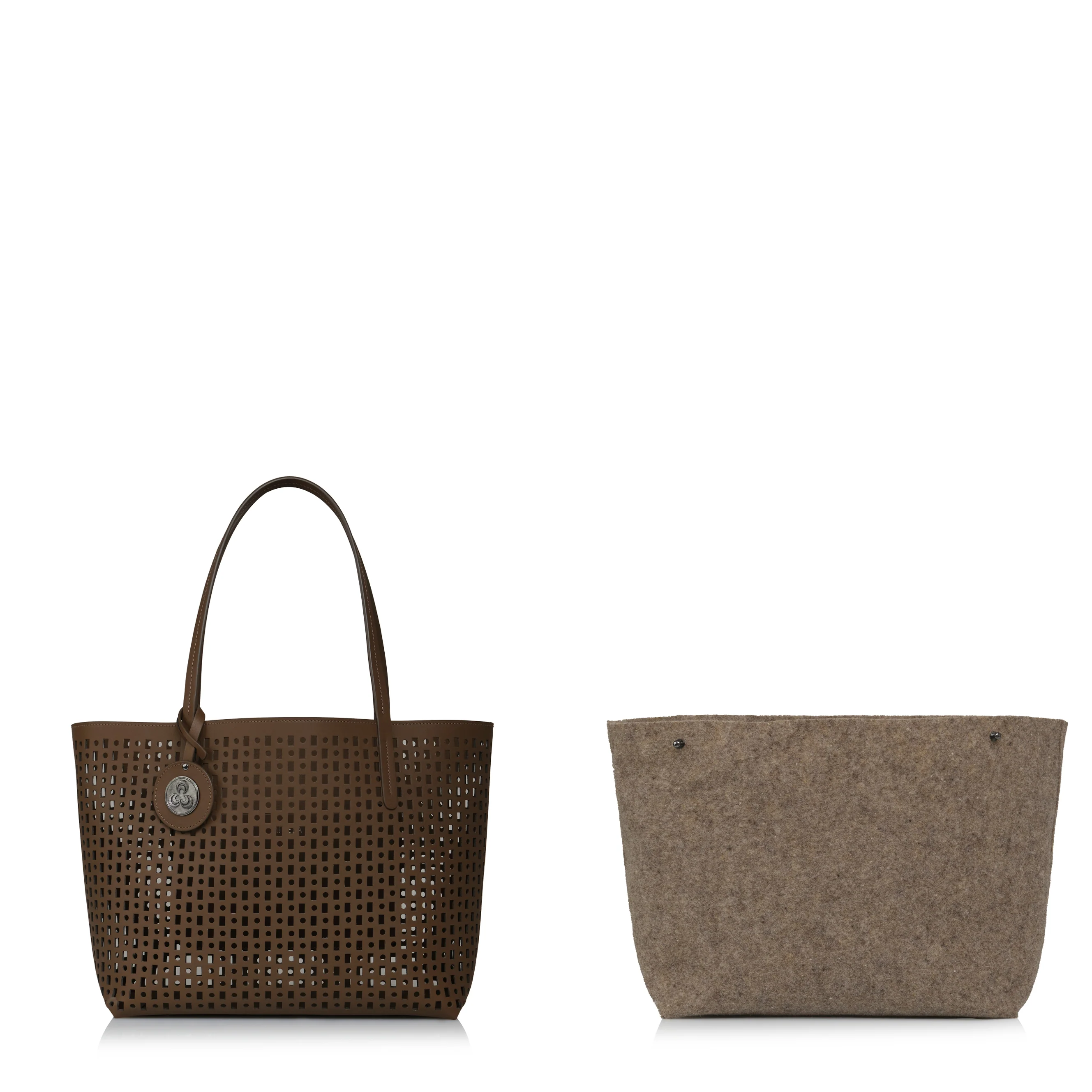 The design also includes a removable felt fabric pouch, adding both functionality and ease of use to the bag’s interior.