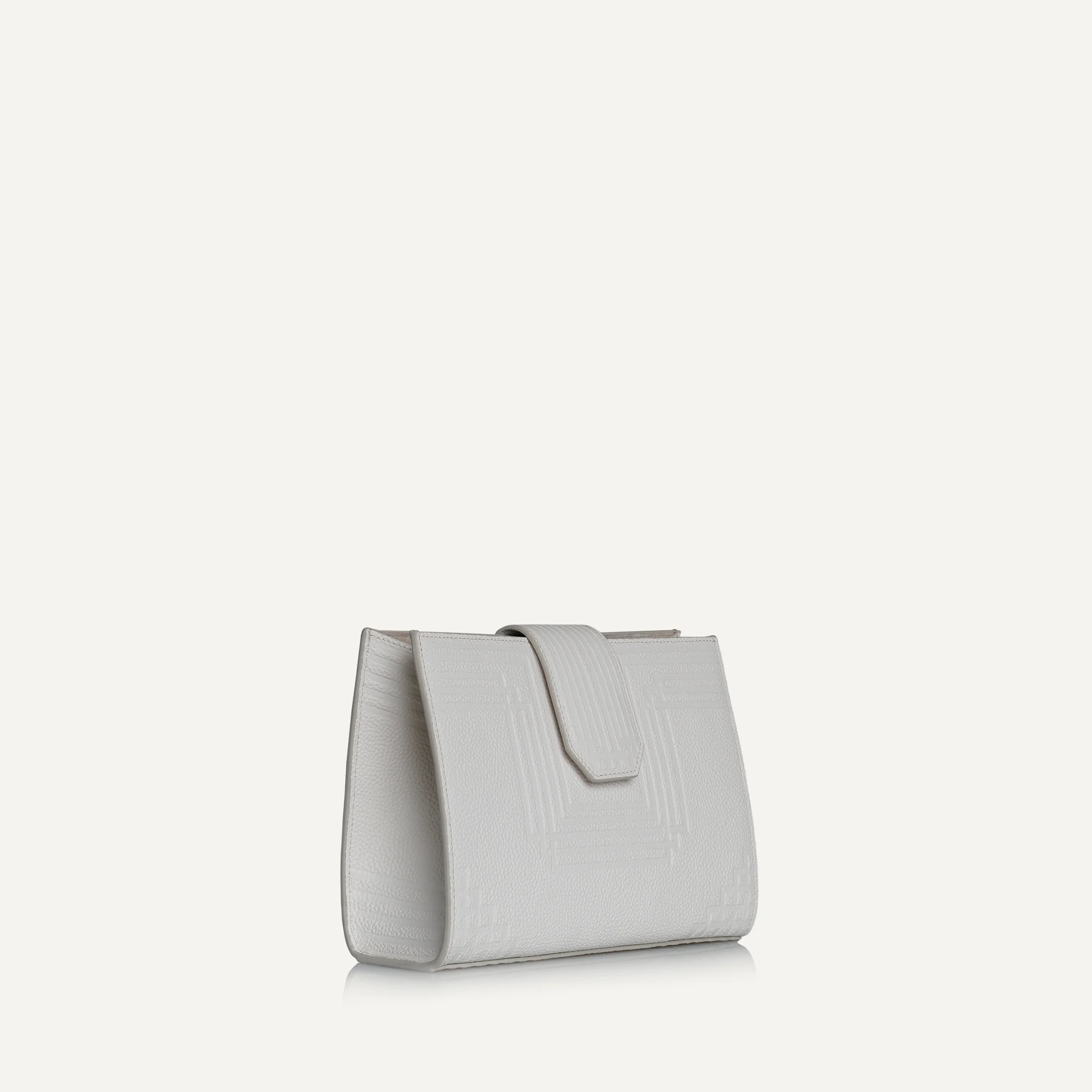 The latest addition to the Deena collection, the clutch version reimagines this iconic design in a sleek, compact form. Inspired by the timeless elegance of Princess Deena Abdulaziz, it features the same eclectic architectural lines as the top handle and tote versions, maintaining the signature sophistication of the Riyadh collection. Handcrafted in Istanbul, the Deena clutch brings refined style to any occasion.